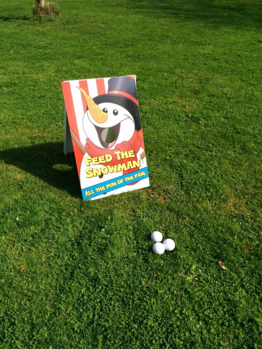 A real classic, simply throw the 'plastic white snowballs' through the snowman's open mouth to win a prize.