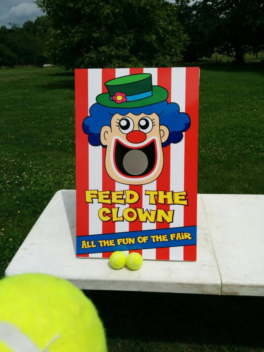 Feed the Clown game is a variation on ball in a bucket game. Simply try throwing the 3 balls through the mouth of the clown to win a prize. Works perfectly as a traditional side stall game at a fayre, fete, corporate fun day or any other event or occasion.