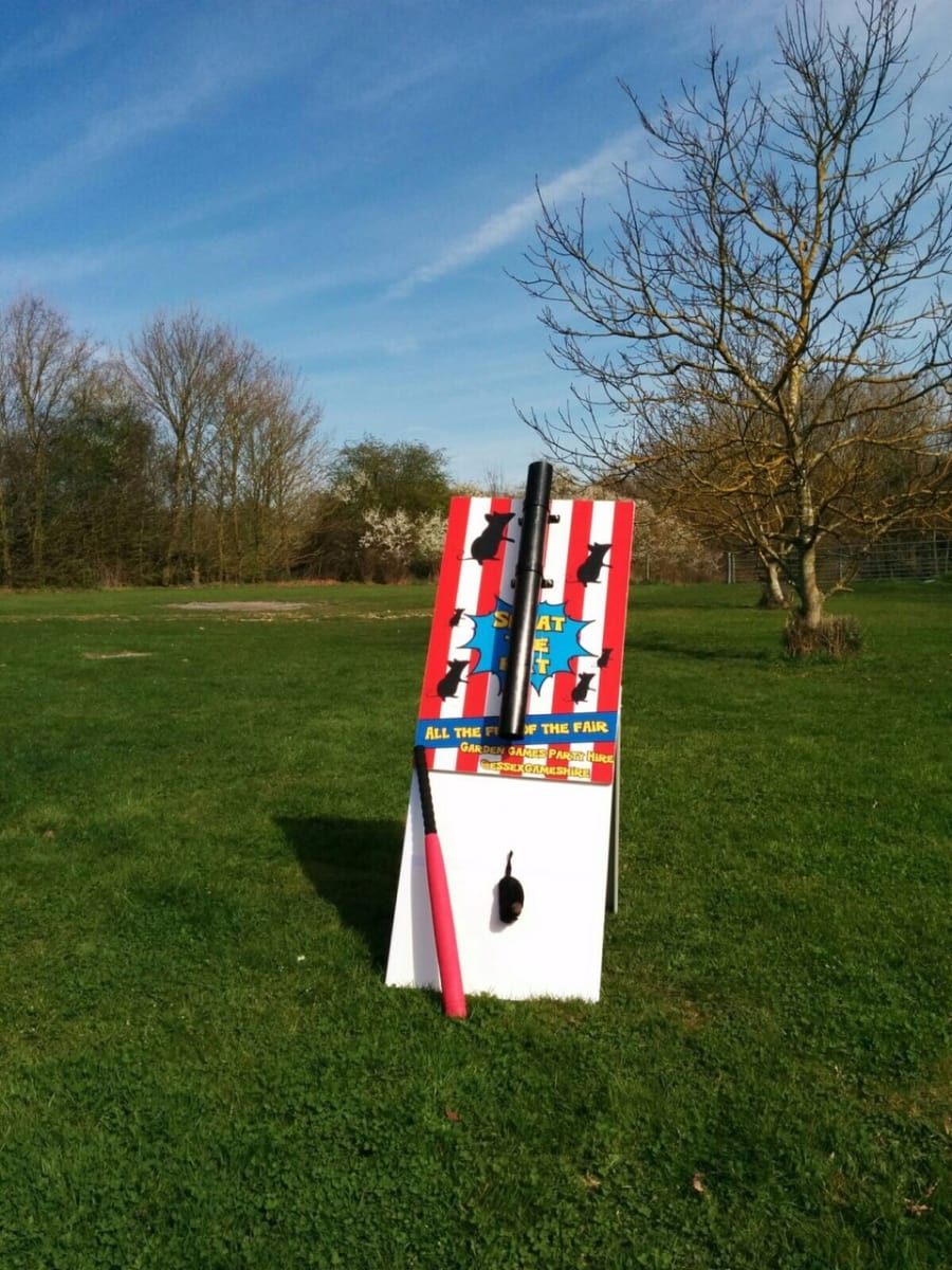 Watch the rat fall through the pipe in this village fair classic and try and hit him with the club before he falls to the ground and escapes. A full 90′s retro classic, a real crowd pleaser at fetes and fundraisers.