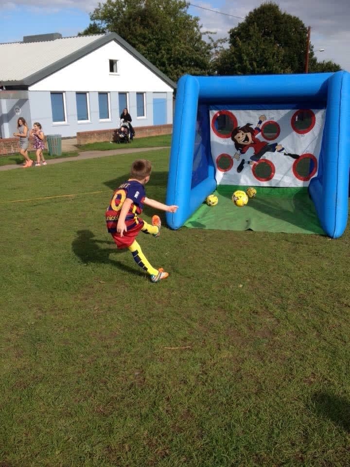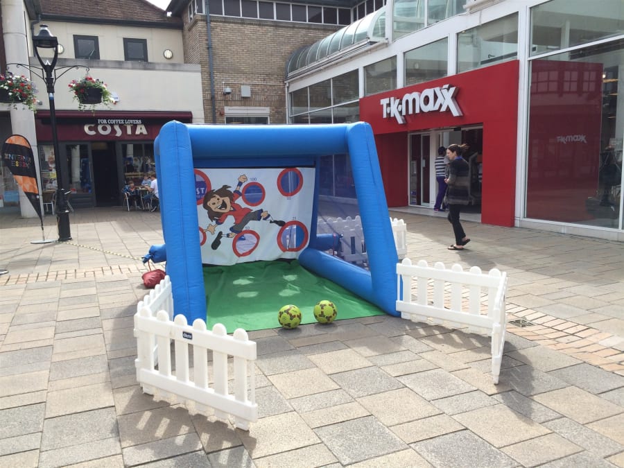 Our inflatable football penalty shootout is available to hire on its own or as part of a package. Keep children and adults entertained as you try to get the ball through the target.