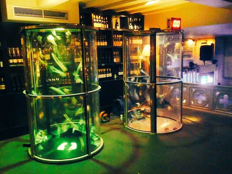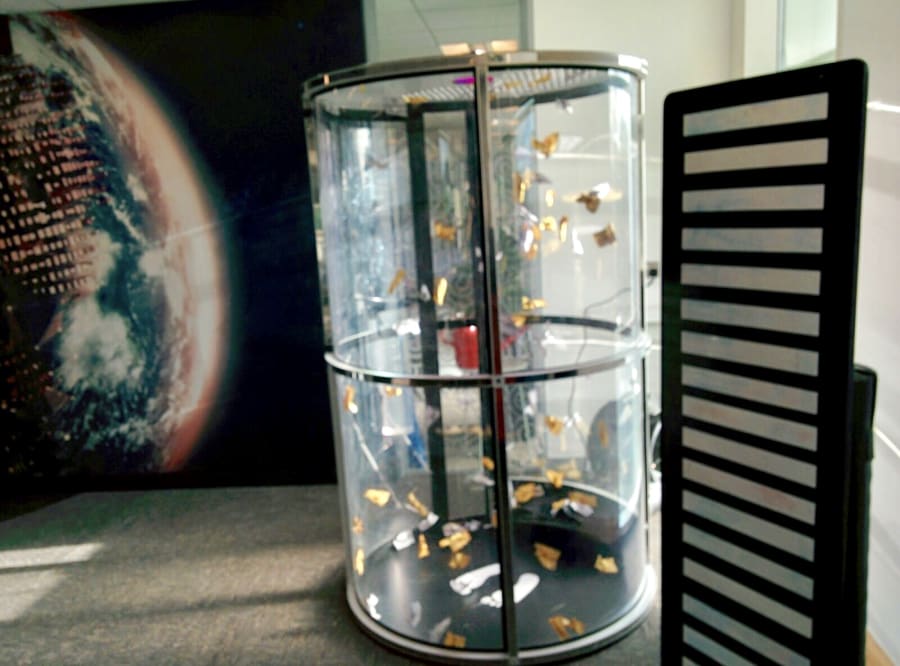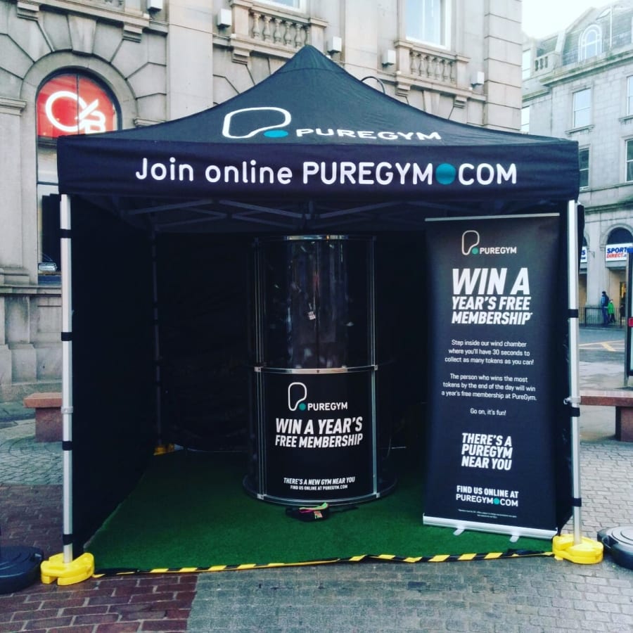 Customers take it in turns to step inside the cube, we’ll switch the fan on and send hundreds or thousands of tokens flying around the chamber... all they have to do is catch as many as they can whilst the clock counts down!