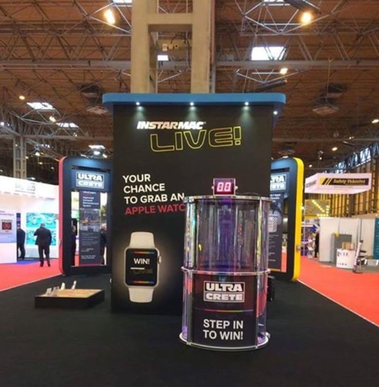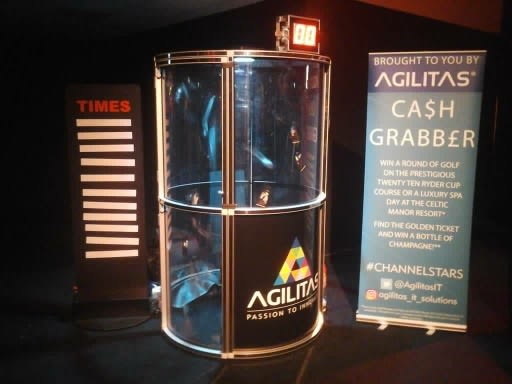 Our grab a grand cube is a real crowd pleaser. The clear perspex box will hold one competitor for the 30 second game.