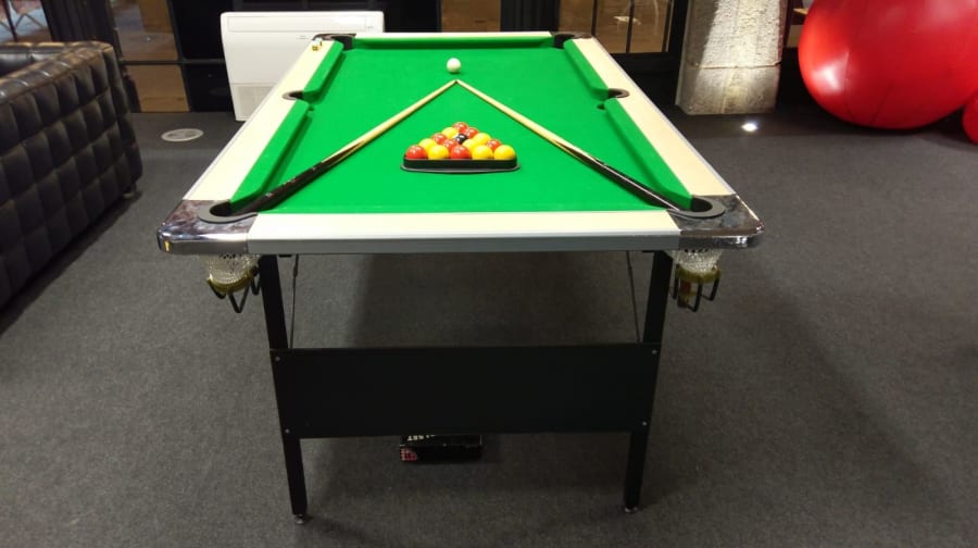 Our 6ft Pool table is fully portable with metal folding legs and chrome finish pocket.