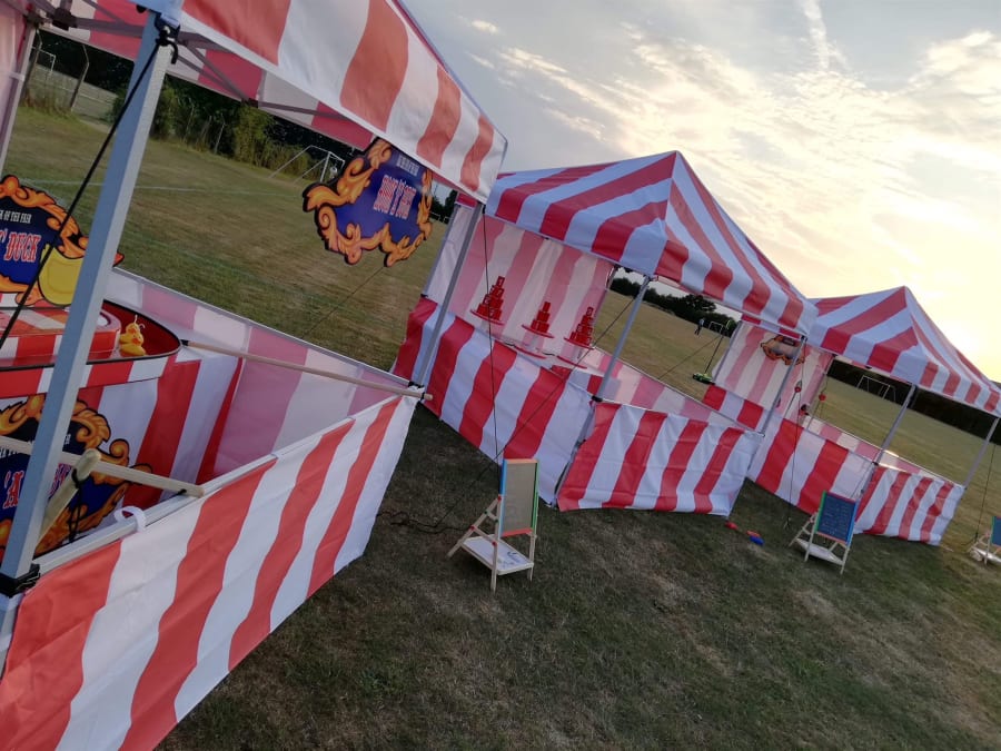 Traditional side stall in red and white colours with our very own Shooting gallery fun fair style game
