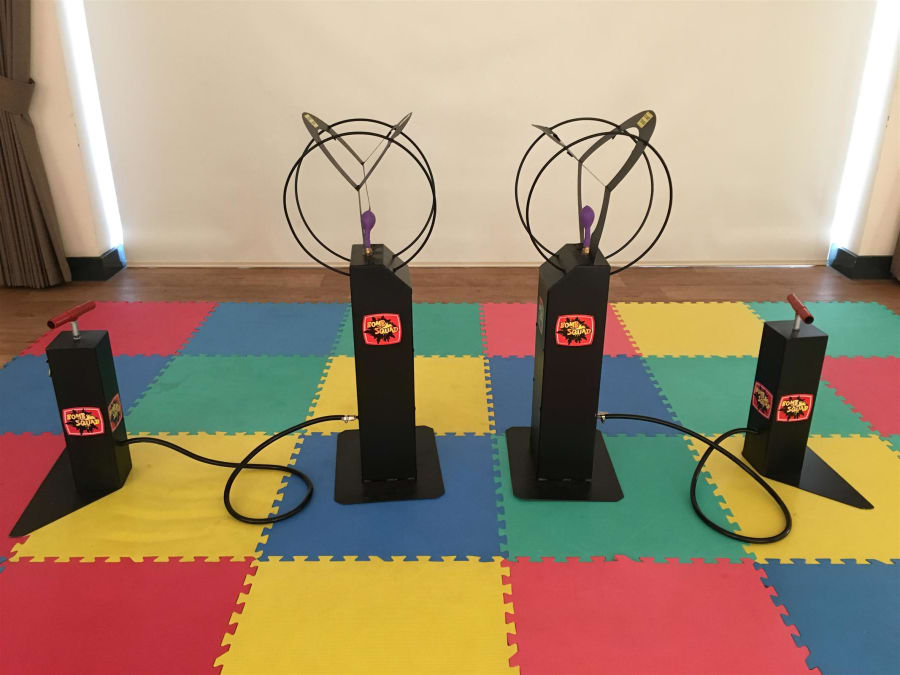 Bomb Squad is an explosive race against your opponent. On the word go you both start pumping as fast as you can. As you do this the balloon will start to inflate. The faster you pump the faster the balloon will inflate until it reaches the pins and when it does boooooom the balloon will explode and you win.
