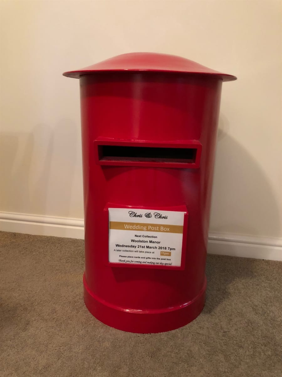 The Post box is also customisable with a space at the front to add your own names and event details in the design that you wish.